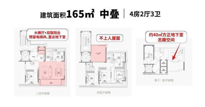 中叠逆袭,预留室内电梯井,带地下室+彩蛋空间+双联阳台