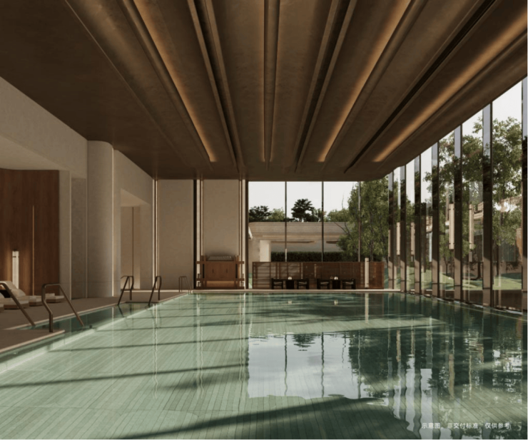 二、精神地标营造:江畔的“社交主场”与“静谧岛屿”。项目将社交与静谧双重情绪价值融入滨江景观。巨幅透明全景泳池与架空泛会所构成的「群岛体系」,既是圈层交往的昭示性主场,更是让身心归航的私属精神领地。