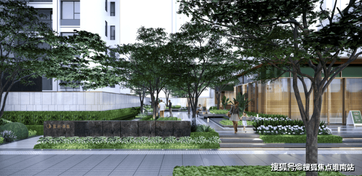 在空间上,项目让出城市街角空间形成街角绿化社区名片,约75米超长尺度城市街区生活形象,打造城市温情归家界面。同时利用项目自持的约500㎡商业配套,为业主提供家门口的休闲与便捷,也能触发更多的社交可能。