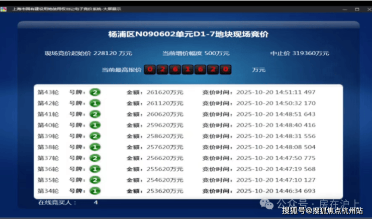 2025年10月,上海第八批次土拍,保利置业以总价261620万元竞得杨浦定海地块,溢价率14.69%,住宅楼板价69958元/㎡,成为当批次溢价最高地块!