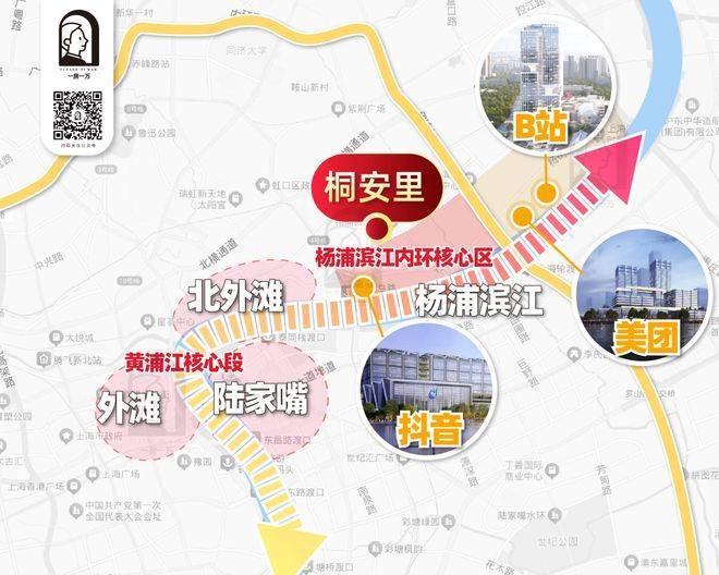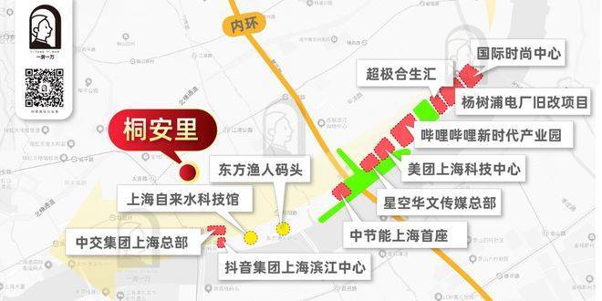 作为整个滨江带的资源汇聚之心,桐安里所在的中央活动区承载着杨浦区最高能级的城市功能域配套:
