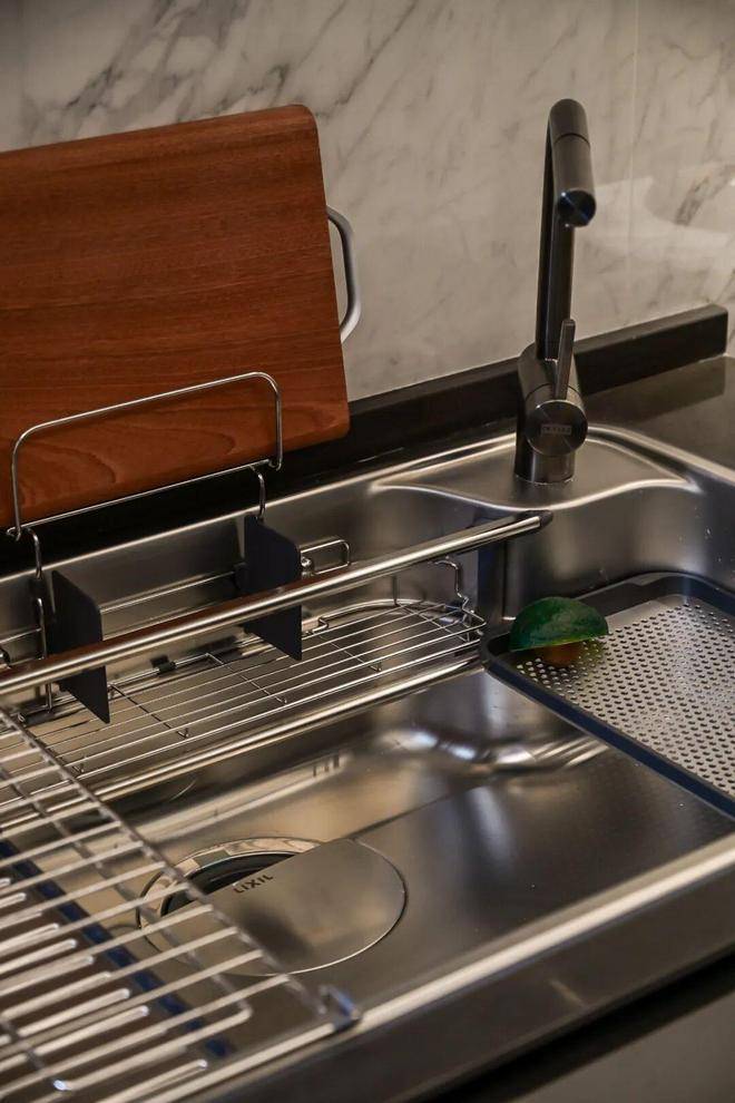 厨房的收纳空间几乎能填满整个厨房空间,这些收纳空间不是随意塞满的,而是根据日常烹饪习惯的频率来贴心规划。