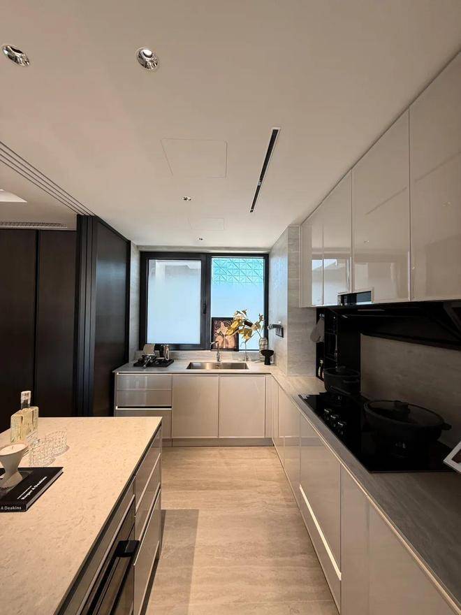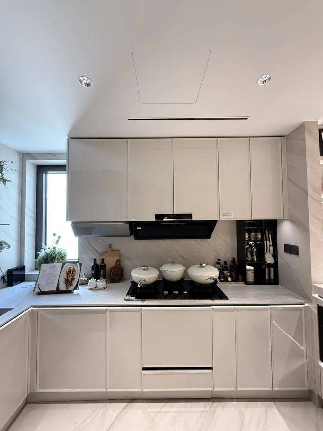 厨房收纳:118㎡户型厨房采用脚踢柜、下拉式收纳篮、洞洞板等设计,水槽下方也配备置物空间,实现“无实物台面美学”。