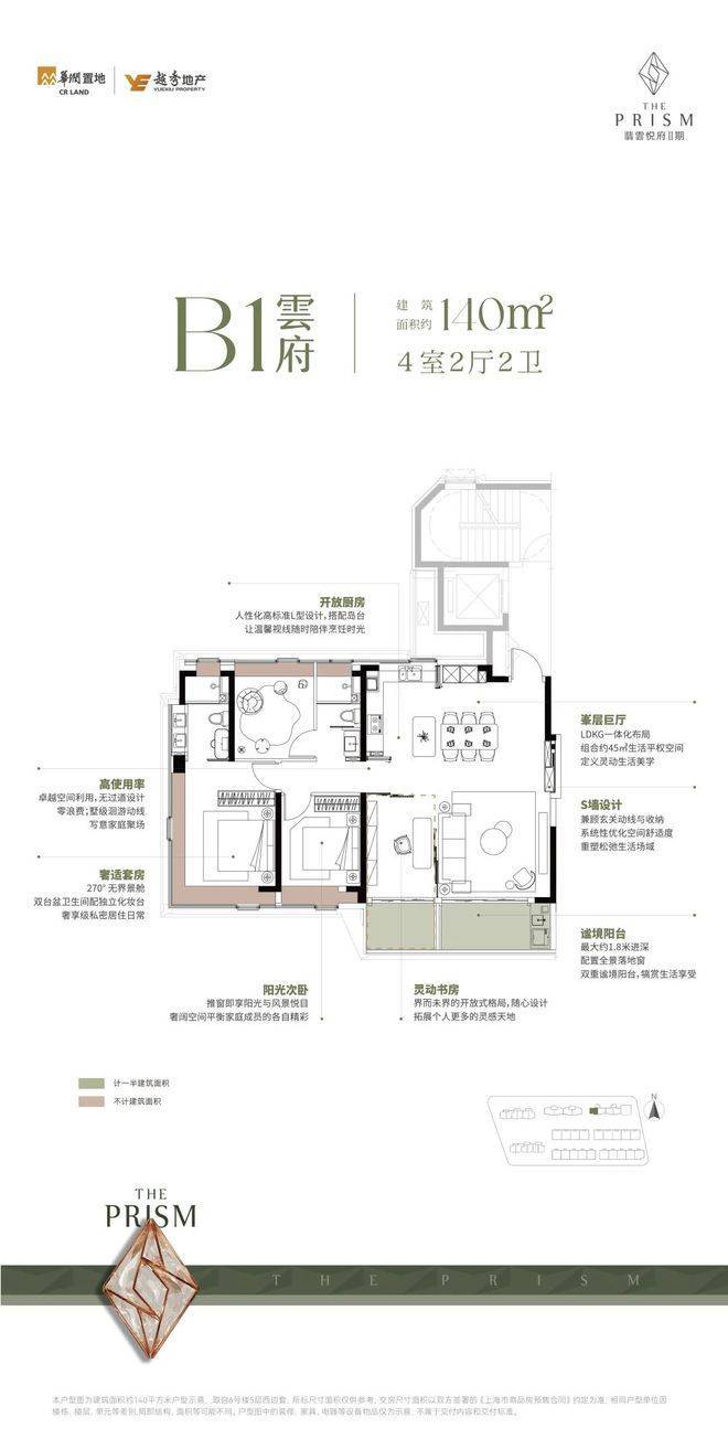 大平层的附赠满打满算最多就有20个㎡。而反观翡雲悦府·悦墅建面约210-215㎡的别墅产品,附赠面积最高约200㎡以上。