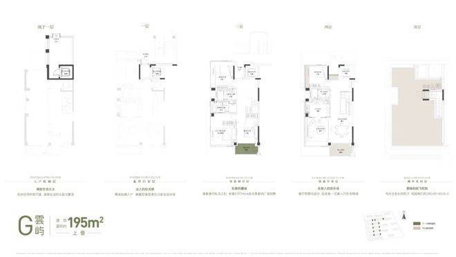 建面约182㎡下叠:庭院+地下室(含夹层)+阳台的整体附赠空间约210㎡;