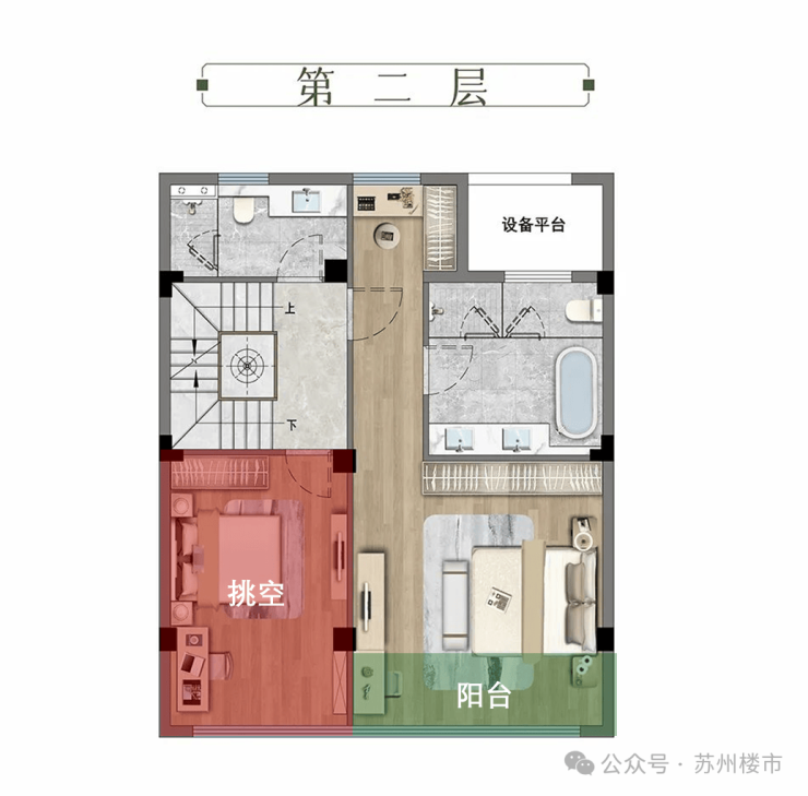 二层,可实现多样化布局。可改约6.4米挑高+南向阳台,根据家庭需要自由定制,可以是2房布局,也可以是家庭第二客厅,工作室、收藏间,灵活性较强。