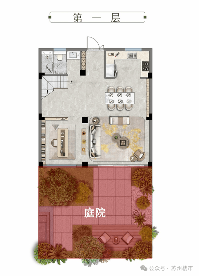 约7.9米南向开间,外接私家花园,有天有地,独门独院,这里既是一家人互动交流的温馨空间,也是宴请宾客、家庭聚会的自在场域。这种安全性和私密感,是其他业态产品所达不到的。