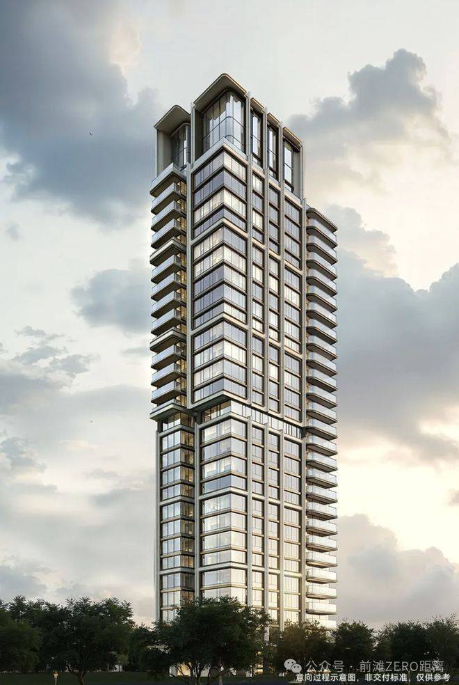 建筑方面,项目为实现视野民主化,临江楼栋向南偏转32.5°,将约400米沿江界面延展为纵深2公里的瞰江长卷。高区视野由此豁然开朗,将黄浦江的壮阔全景,收纳为每日生活的流动背景。