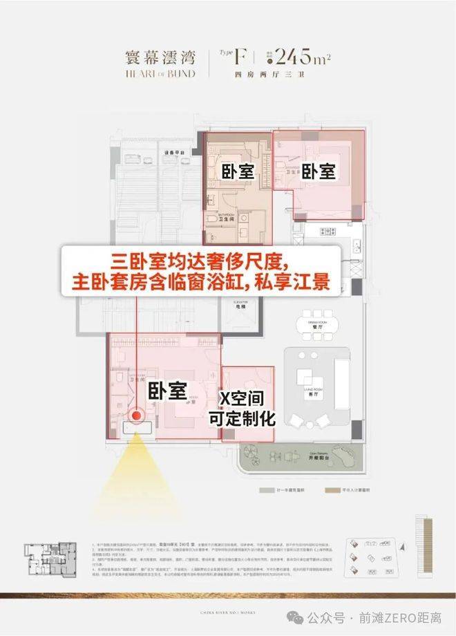 ④三卧全尺度奢适,主卧临窗浴缸瞰江!X空间定制方案可选,实现多场景布置!