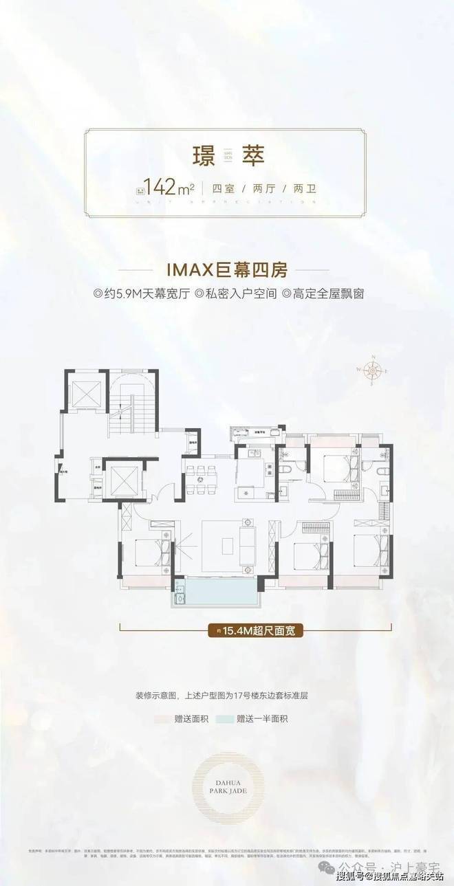 真正一步到位的改善型4房产品,大横厅的设计,四开间朝南+大横厅,约15.4米的南向面宽堪比别墅.