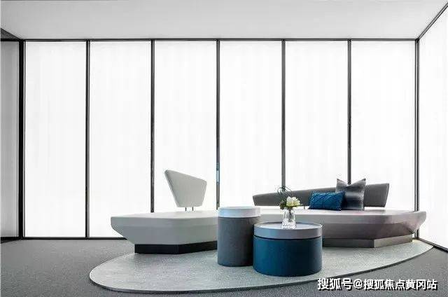 LOW-E玻璃幕墙,三层中空玻璃幕墙融入流畅的动线,以不同的材质和肌理进行穿插,使得整个空间灵动而通透。入口之处晶莹剔透的曲线玻璃中庭设计更是为整栋建筑增添了一抹亮点。