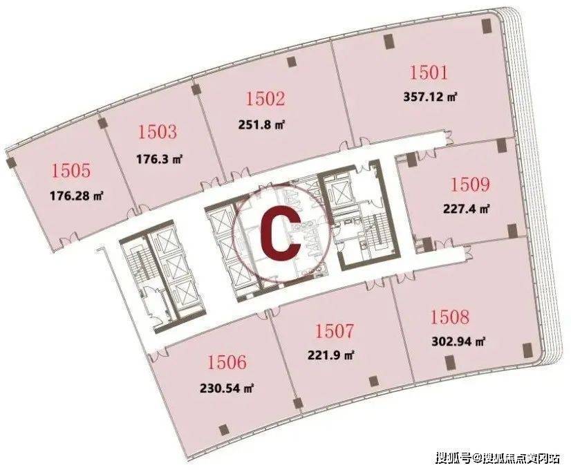 设计公司:Gensler(上海中心统一团队),双挑空大堂(1层480㎡,3层1400㎡,层高均10.8米),得房率约68.8%。