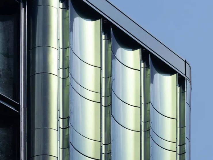 以艺术家的创意逻辑,把建筑变为一件艺术品,别出心裁的定制了蓝色幻彩铝板,精心设计的内凹反弧造型,折射效果更为明显,在阳光的映照下,展现出多彩的光泽。宛如一幅梦幻般的画卷,不停的在炫耀着这栋建筑的艺术之美。