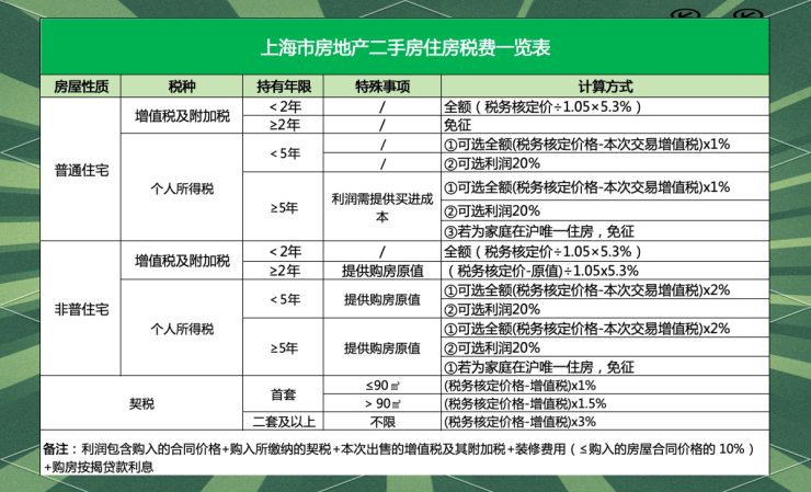 C. 上海购房涉及的主要税费概览:
