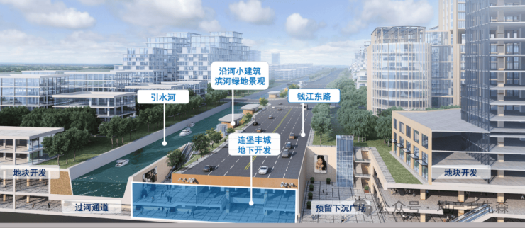连堡丰城(五堡TOD&六堡TOD),是集生活配套、艺术展示、潮玩体育类等综合业态于一体的“地下大都会”。全长约3.8公里,通过城市轨道交通引领,深度开发地下空间,在钱塘江畔开发出33万平方米的地下“隐形城市”,连接了地铁9号线御道站、五堡站、六堡站、红普南站。