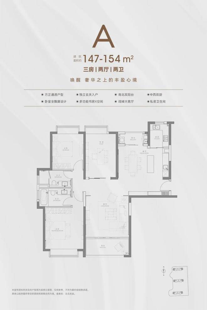 值得一提,该户型餐厨空间可塑性很强,3房可成长“3+1”房,用作工作间、琴房等,改善一步到位,比固定不变的4房更灵活。