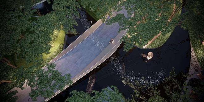 凤咏朝阳的北入口都很讲究,就像下一秒要拥人入怀的臂展——凤咏朝阳用浓烈的仪式感打造了两大主入口,用的都是星级酒店的做法,让我们不自觉就会调整入户前的情绪。重头戏更在大门之内,他们把江南四大名园的造园手法,运用到了凤咏朝阳这座「游园式大平层」的园区中——