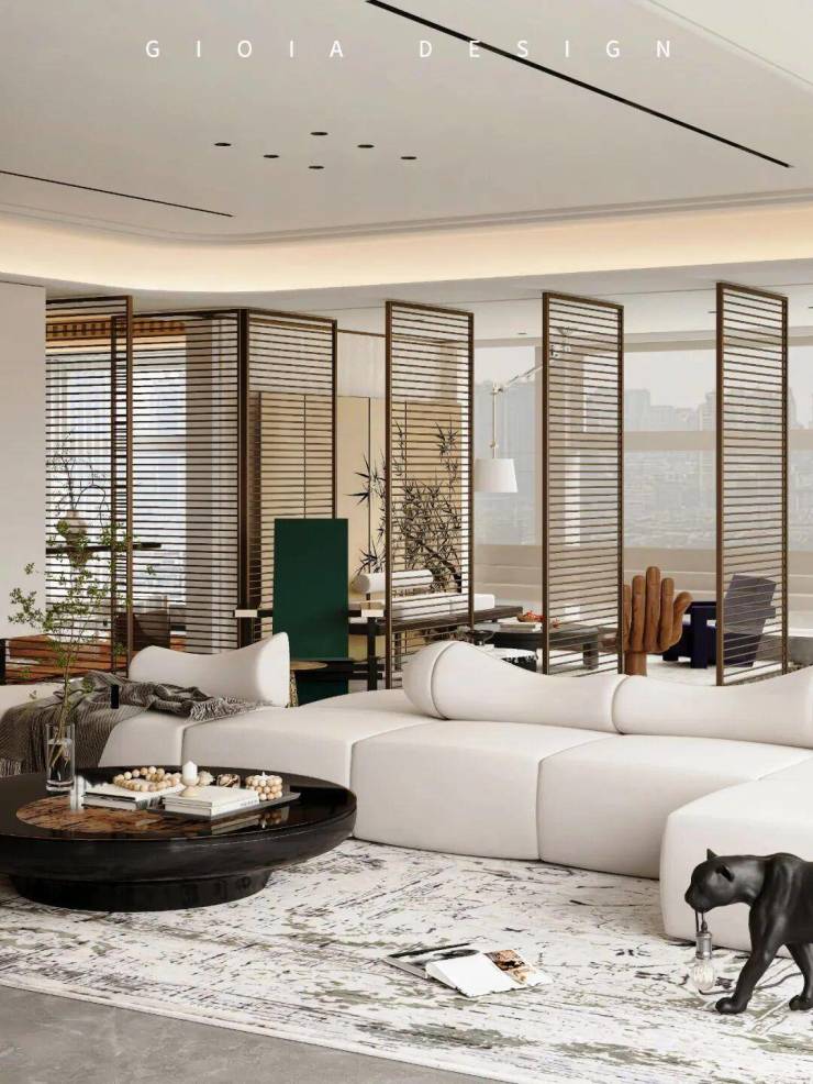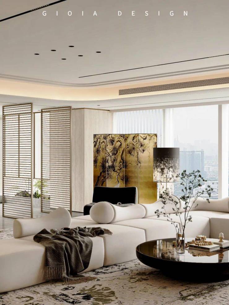 将艺术感进一步融入日常中。特别设计的专属门厅空间,是从电梯厅延伸到家,如同一处艺廊,放慢人的情绪;室内选用了浅金色奢石(外界也称其为“芬迪白大理石”)作为主要的石材,曲面的木饰面也为浅色,整体给人以明亮感。