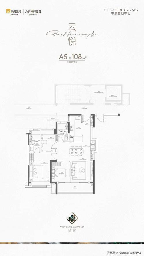 建面约108㎡三房:横厅设计,三开间朝南,带大阳台,总价约700万级,适合年轻改善家庭;