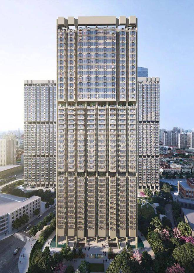 除了住宅用地,该项目还建造了一座历史保护建筑与一栋办公楼,从效果图上看,三栋约160-170米的超高建筑,与传统的豪宅项目完全不同,十分霸气,令人震撼。同时取代150米高的华侨城苏河湾,成为浦西住宅第壹高。