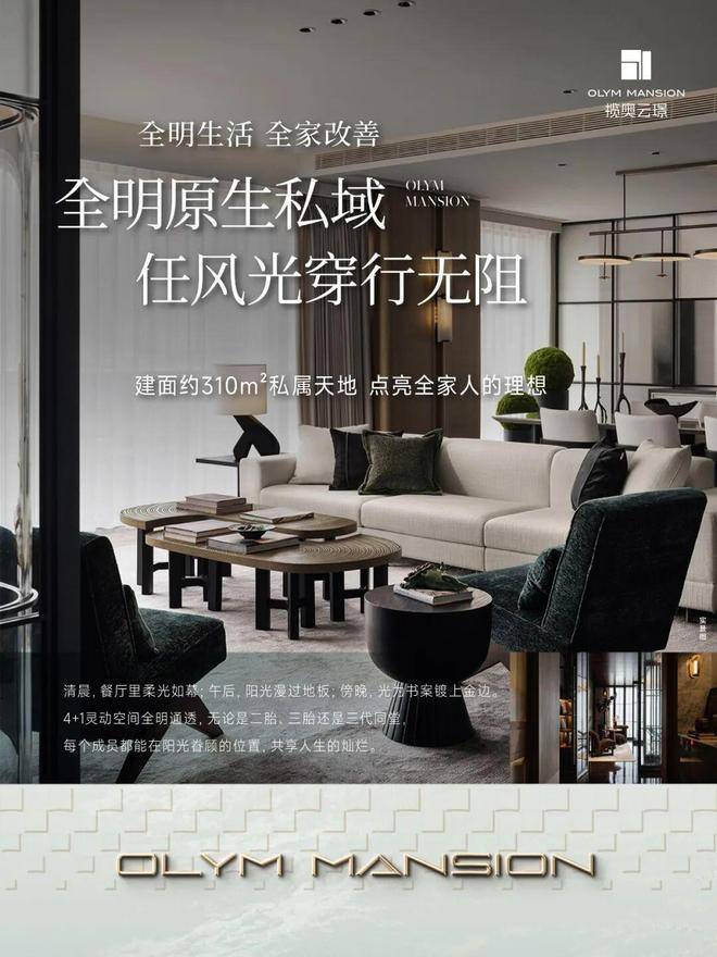 揽奥云璟是杭州奥体板块的地标级大平层项目,主打310-347㎡的改善型住宅,总价约850万起,由中海物业提供高端服务。