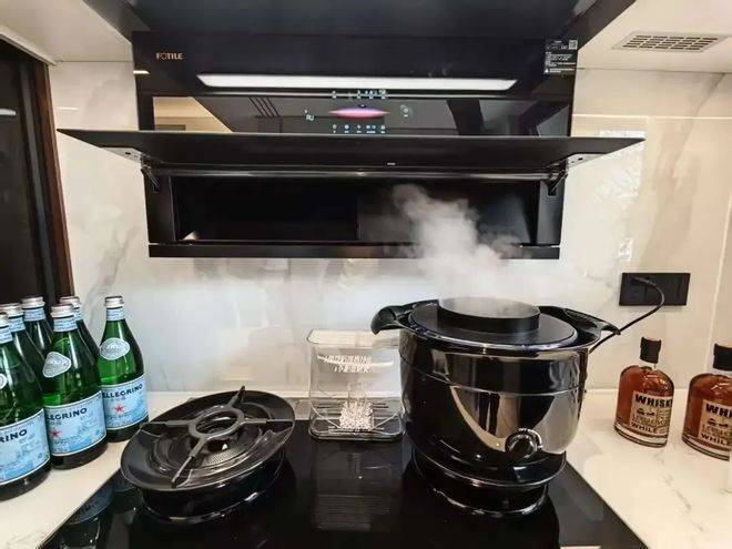 ⑤大手笔的在厨房设计了油烟机自带制冷空调,相比只能吹风的凉霸而言,这样的设计更美观也更舒适,用实力演绎千万级别的高端住宅体验!