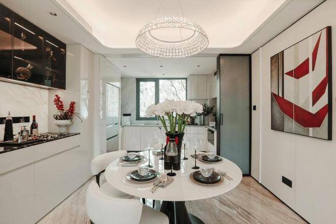 还有更多细节:比如整个公共区域都是瓷砖通铺。139㎡采用简一密拼瓷砖,餐客厅、厨房通铺,尺寸达到每块900*1800mm,在视觉上形成一个整体,简约大气;