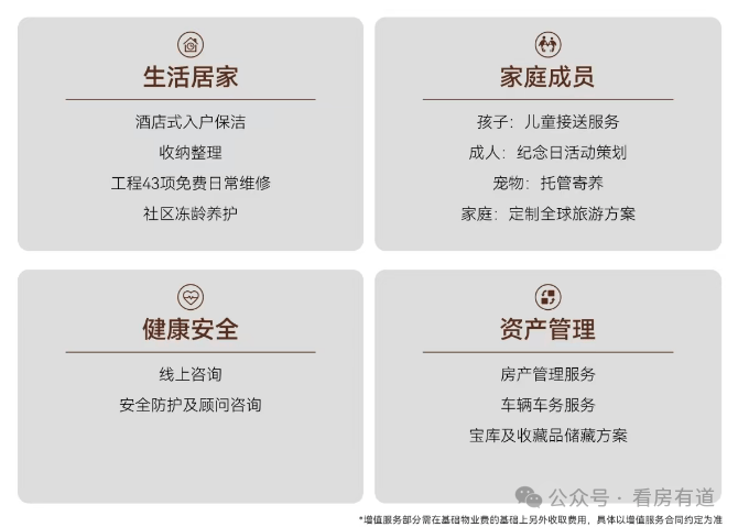 同时引入源自世界奢华酒店的“无边际服务”,依据280余项标准化服务细则,提供日常居家服务、健康安全、资产托管等增值服务,如入户保洁、儿童校车点接送、宠物托管、工程43项免费日常维修等,打造“冻龄”社区。