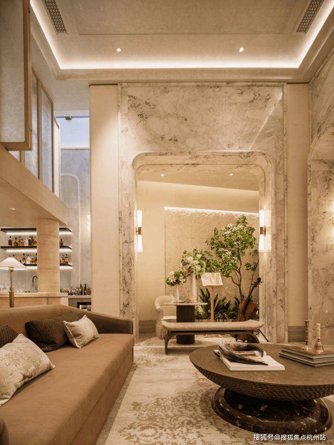 壹江臻邸官方售楼处电话:400-8818-994【预约☎】月光米黄石材门头历经十余道工序精磨,将织物般的温润肌理化作归家第一重礼遇,让每一位访客感受到“厚重中的轻盈”;与瑰丽酒店同源的门牌徽章,也在静默宣告业主的尊贵身份。这种对细节的精研与偏执,是招商长期生活主义的生动注脚,也让壹江臻邸的公区质感远超同价位竞品。