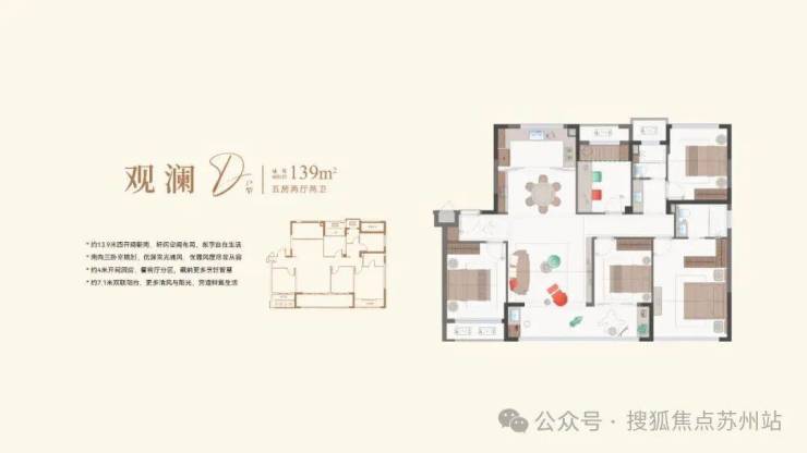 五房两卫的配置,满足家庭全生命周期的成长需求。约13.9米的总面宽,让每个房间都享有充足的采光与通风,真正实现“一步到位”的终极改善。