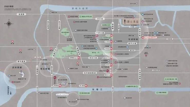 项目位置位于兴元路与东湖北路交叉口,直面运河支流三花港,拥享项目内湖,享受双湖的内外涵养,同时可就近乘坐地铁9号线,速达未来临平高铁北站,紧邻蜗牛广场,周边教育医疗生活配套完善。园区打造一轴五境十三景大美园林,精琢互动式的自然生活场景。