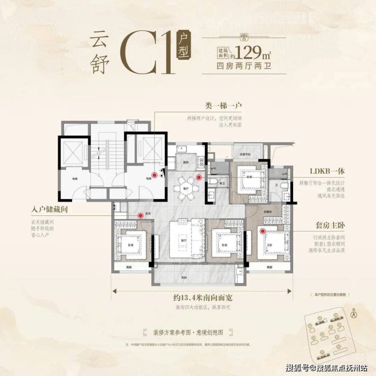 2、四开间朝南,南北通透(南向面宽13.4米)