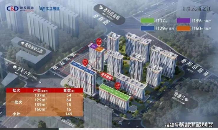 户型建面约107-174平,107平洋房,可做4房;其他户型为纯T2小高,类一梯一户,纯改善四房社区;