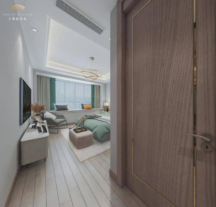 不仅如此,为与室外生态院落呼应,湖湾洋房均设计有客厅和卧室的连体阳台,尺度宽阔,除了洗晒之外,还可以放画架、跑步机、瑜伽垫等等,一个多功能情致空间,伴着鸟鸣与涛声,就呈献给了有趣的生活家们。