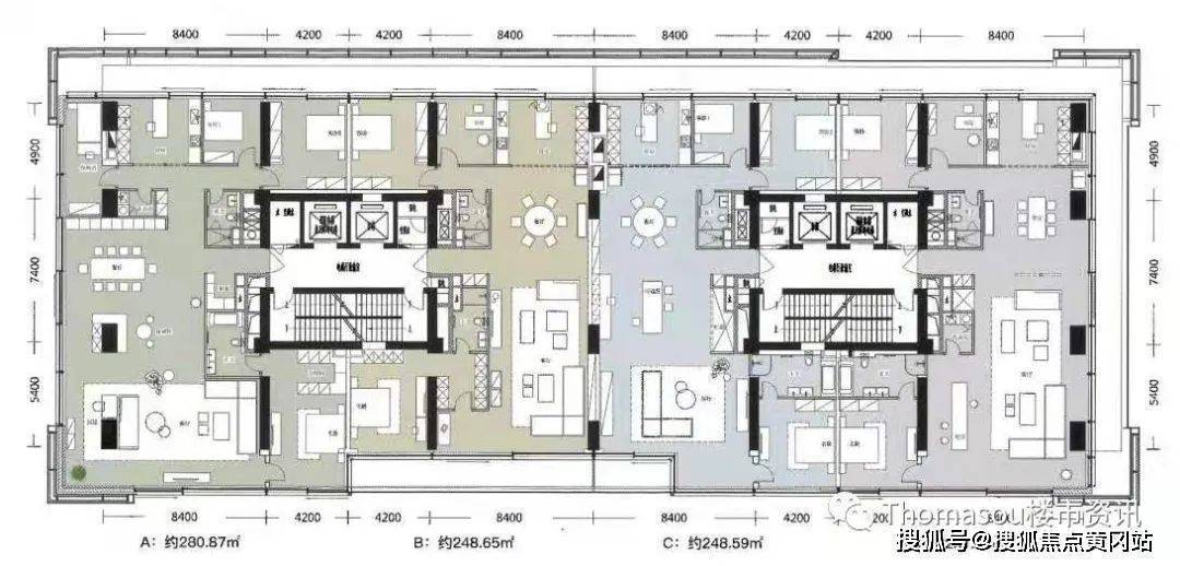 • 面 积:𝟐𝟓𝟎.𝟏𝟒㎡(交付三房两厅三卫)