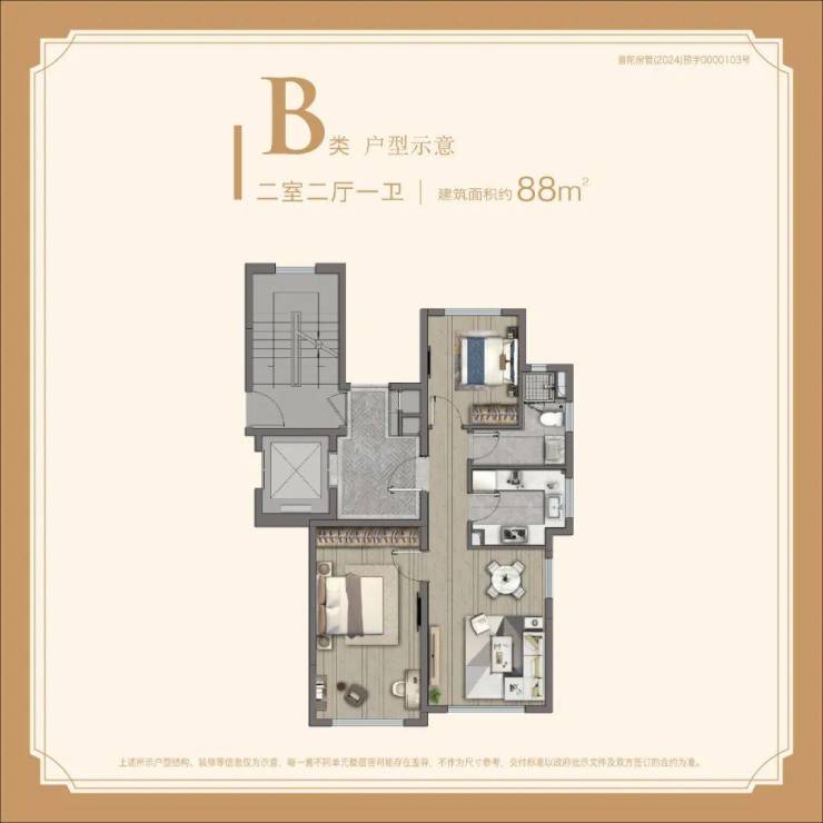建面约100-101㎡户型,拥类独立电梯厅,无连廊+飞机户型南北通透。