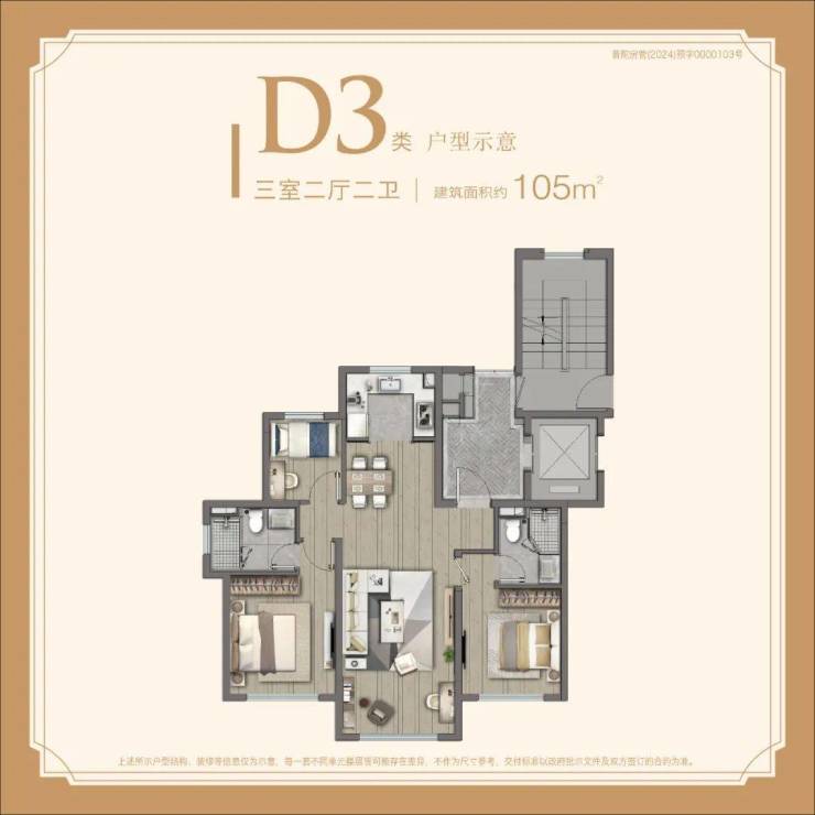 ▶主力在售建面约105㎡3房,中外环鲜有的900-1000万级高品质户型!