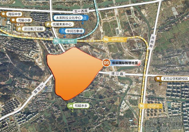 项目在华润杭珹未来中心的正背面。地块挨着未来科技城文化中心,到地铁3、5、16号线换乘站绿汀路站,不到500米,正背面是杭珹未来中心。