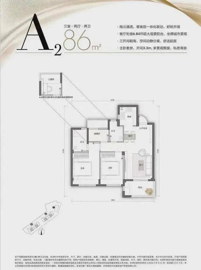 - 房型:涵盖56平方米、86平方米和93平方米的小洋房,共3幢多层建筑