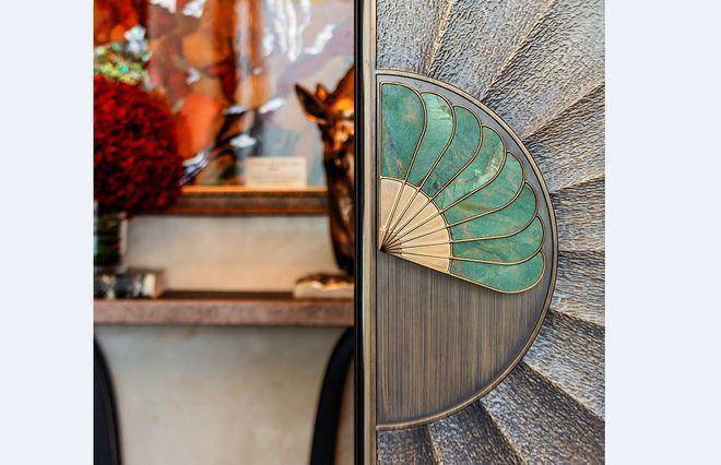 没错,从入户门开始就硬控了我。这个寓意孔雀开屏的门,可以说我在上海是不曾见过的,孔雀的羽毛之下是被藏起来的指纹锁,这个设计就别具匠心。