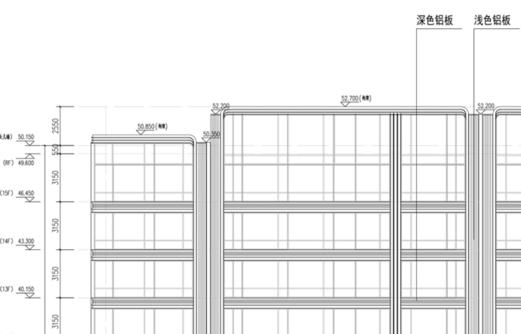 外立面则以深色铝板+浅色铝板+浅灰色玻璃搭配组成,效果比较简约、大气。