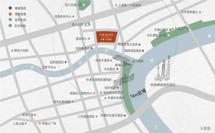 现有:商业配套:坐拥全上海市蕞优渥的滨水资源及蕞顶级商圈,步行5minutes可抵外滩万国建筑群、步行10minutes左右到达白玉兰广场、新世界大丸百货、恒基名人购物中心、南京东路商圈等,驾车1.5km可到北外滩核心中央活动区、车行1.7km可到达陆家嘴CBD国金中心、约4km内可到达老码头BFC商圈、城隍庙、新天地商圈、淮海中路等商圈。