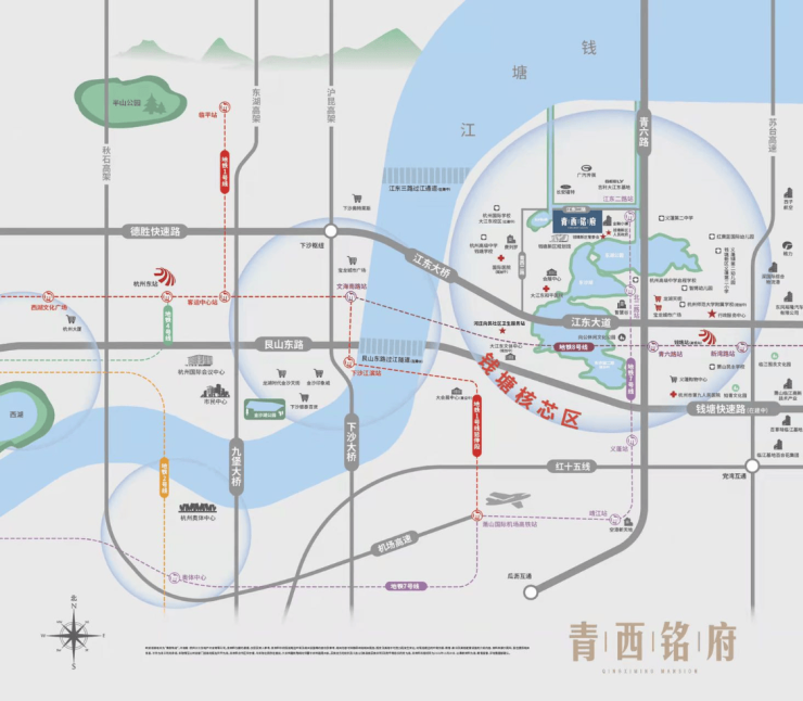 主要干道:青六路、江东大道、红十五线、钱塘快速路