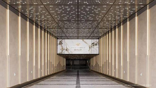 在昌平云岸,归家的尊崇始于车轮触地的第一刻,这里的地下空间早已超越功能本身,化作一场精心编排的感官仪式。当座驾滑入由石材铺就的坡道,星空穹顶便以流动的光晕温柔相迎,香槟金色的艺术线条在视线尽头舒展,如同为每位归家业主铺就的隐形红毯。