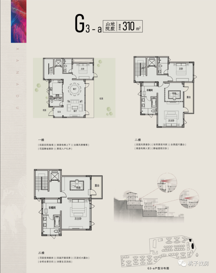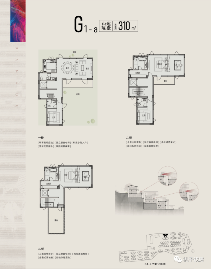 【产品规划】:首开地块为A1湖晓云墅,位于仙女湖西侧,总用地面积约3万㎡,总建筑面积约4.36万㎡。规划16幢3F湖山院墅,总户数81户,地上三层(一层3.4米、二层3米、三层2.9米+坡屋顶),地下一层(层高3.1米-6.6米)