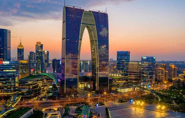 当"大裤衩"东方之门撞上古典园林,魔幻感拉满!周五晚音乐喷泉秀水幕高达百米,但我更爱李公堤的落日时刻:租辆单车沿湖骑行,看夕阳把湖面染成鸡尾酒色,回头苏州中心灯光倏然亮起,科幻大片既视感!(📍工业园区 | 🆓 免费)