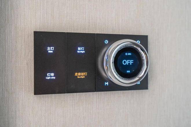 钻石旋转智能中控面板,可联动全屋WIFI、中央空调、全屋灯光等,覆盖归家、离家、工作、娱乐、睡眠等多重智慧生活场景。