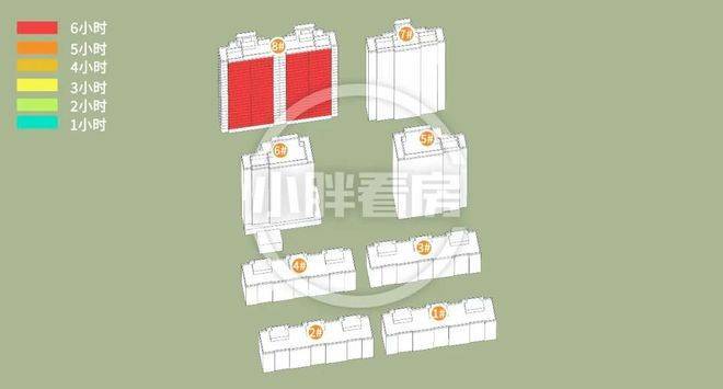 华润望云润玺的分析结果是这样:计算已考虑周边所有建筑的影响,结果表明周边建筑不会对本次开盘楼栋产生遮挡,楼栋仅受地块内部遮挡。