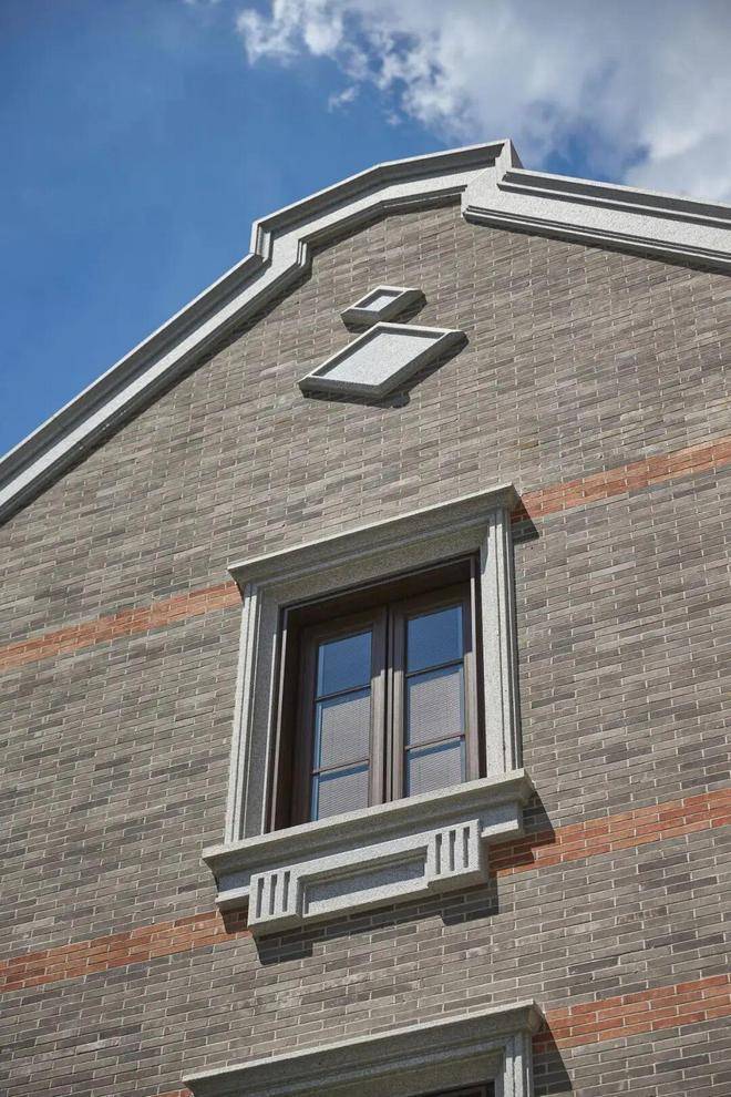 在建筑风貌上传承了海派里弄文化,拱形门坊及雕花汲取湖州会馆建筑灵感,“菱形山花”作为超级符号统一运用于室内、景观铺装、建筑立面。红砖清水墙与巷道风貌铺装,演绎衡复风貌的当代奢华,赋予家族恒产人文价值。