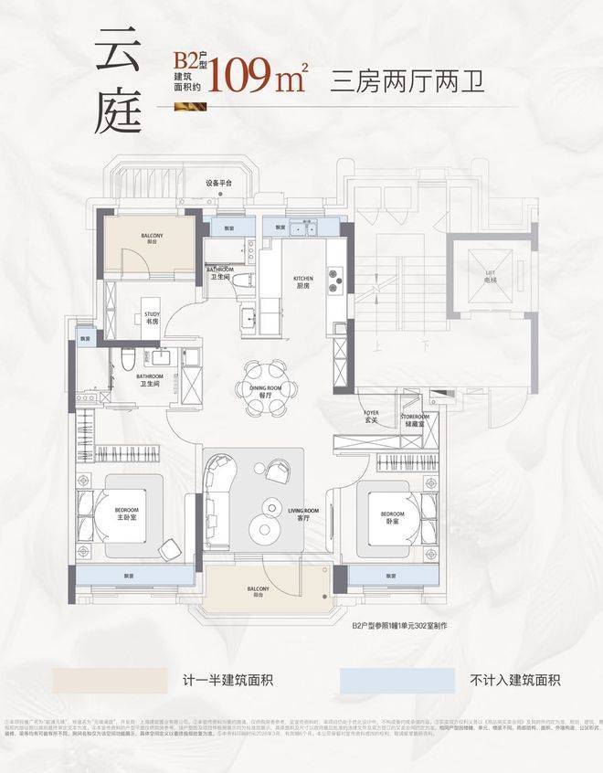 项目约109㎡户型,实际使用面积堪比常规约130㎡户型;约139㎡户型,使用效果接近常规160㎡大平层。相当于少花近20㎡建筑面积的钱,却能享受到同等的空间尺度。